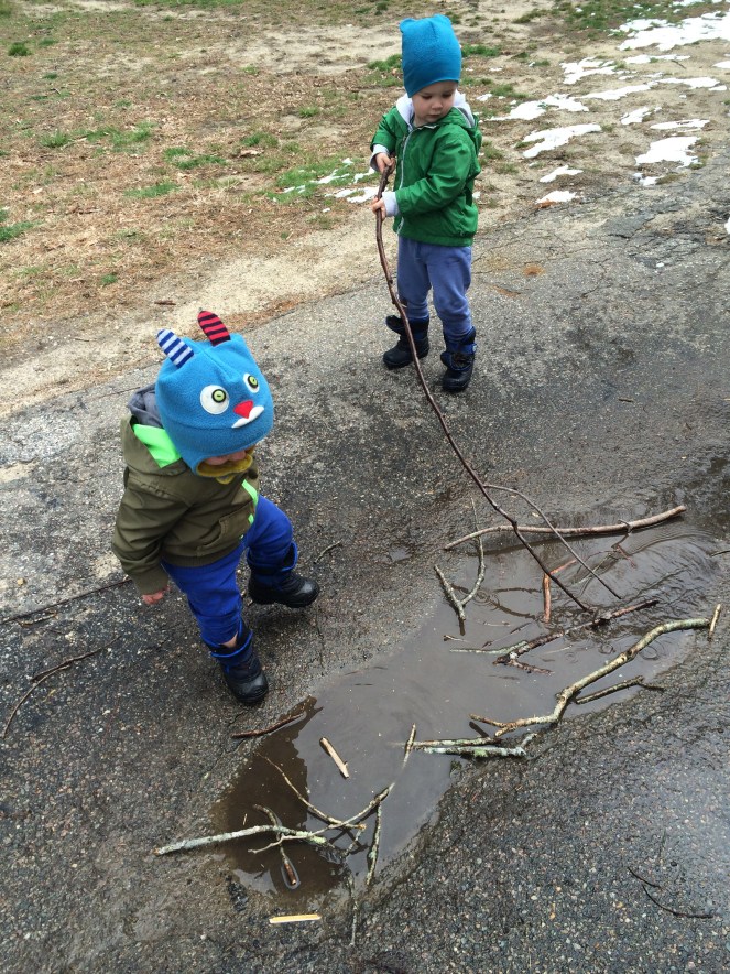 My kids LOVE sticks. Any project that starts with collecting sticks is a hit in their book. Actually, the first collection of sticks became a batch of stick stew in our driveway, so we ended up doing a second stick hunt. Oh darn.