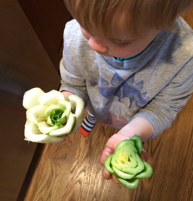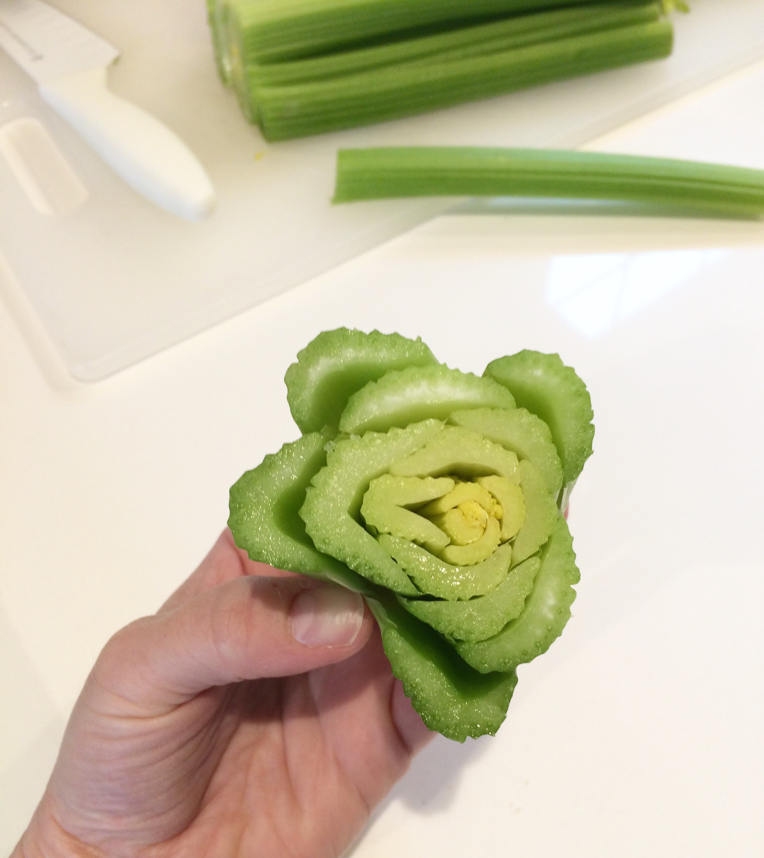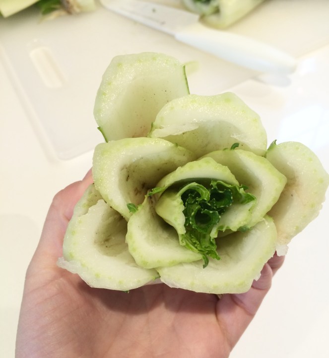 Now for the flowers. We used celery and bok choy. Just chop the end off. Isn’t nature incredible? Such a beautiful design hiding in plain sight.