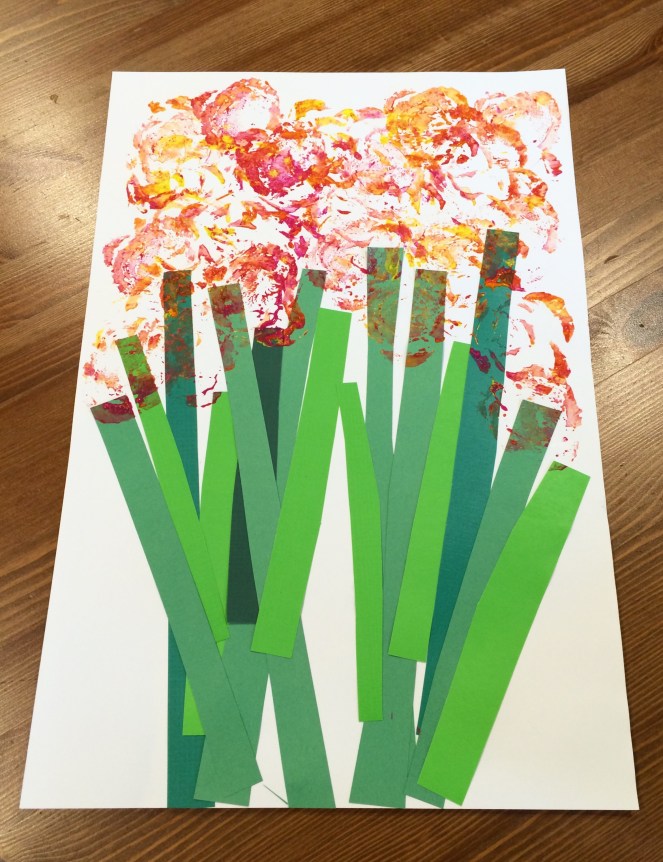 This has been one of my favorite painting activities to repeat. It comes out different every time, but it’s always gorgeous. This year Jackson did his own cutting! We’re going to give these to the grandmothers on Mother’s Day.