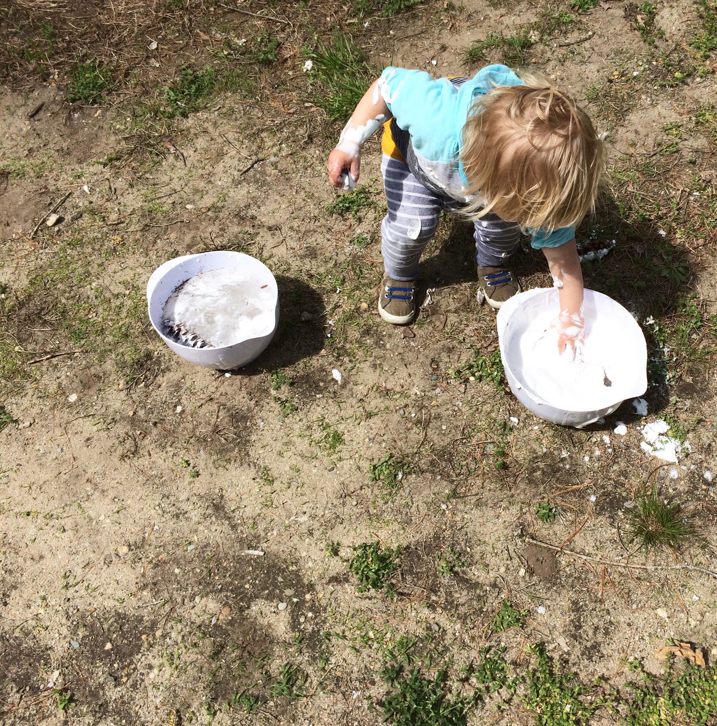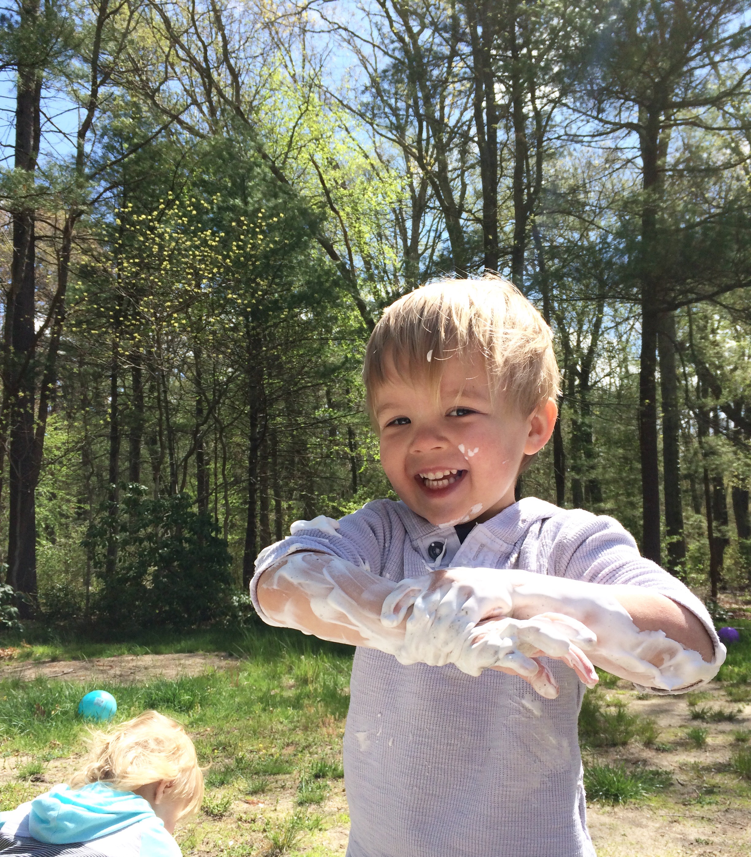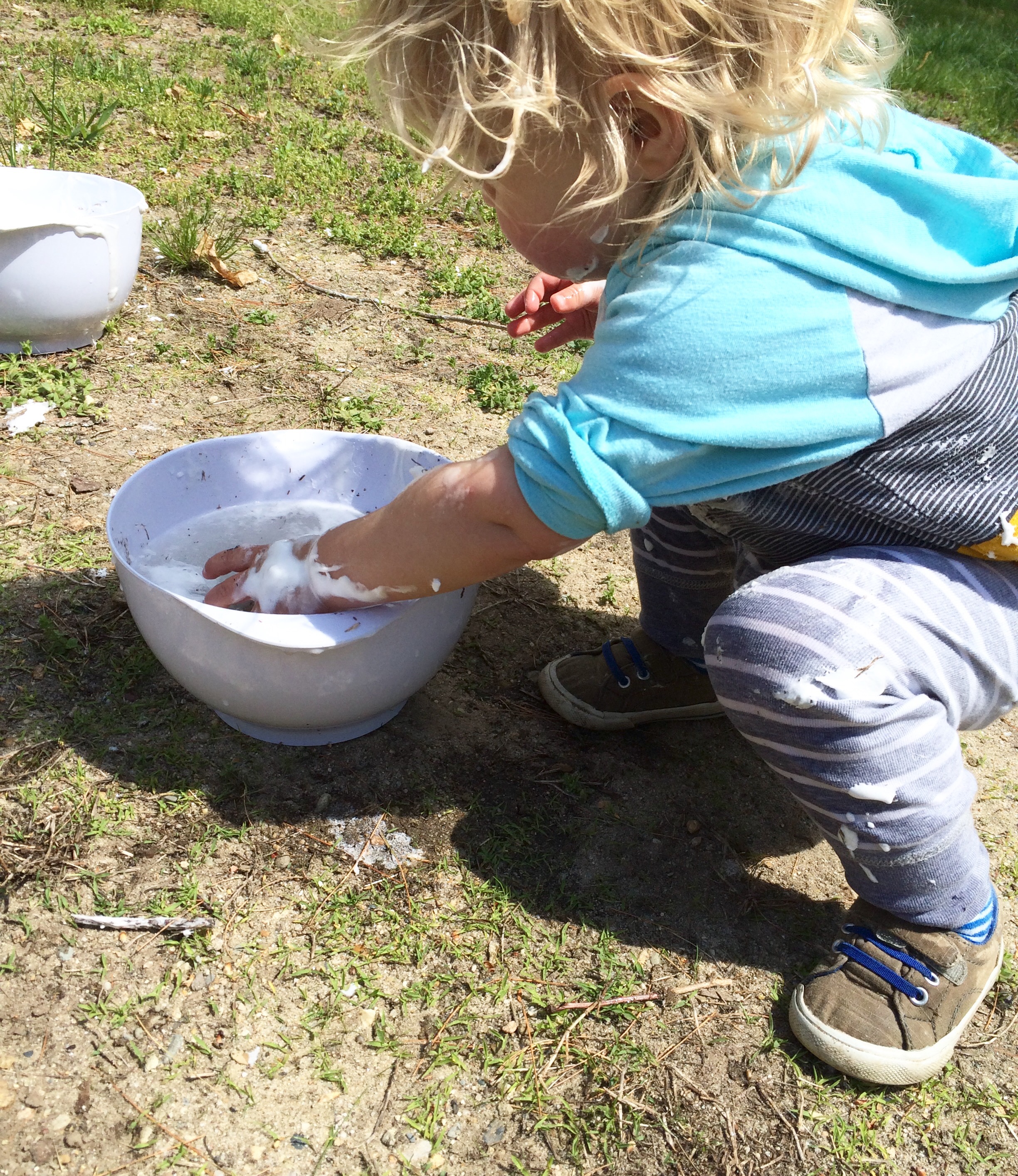 Between our recent teething kick with Lucas and the fact that somebody must have told Jackson he should really start acting like a stereotypical 3.5-year-old, we’ve been having a lot of THOSE DAYS lately. One of the only things I’ve found to bring my boys joy on those days is a crazy sensory experience like this. And being outside. That always makes all of us feel better.