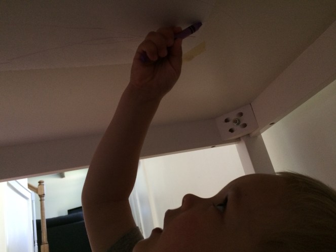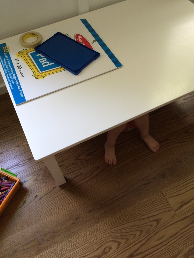 Today, I taped a piece of paper under the playroom table and Jackson and I drew with crayons. We were under there for an hour. It was awesome.