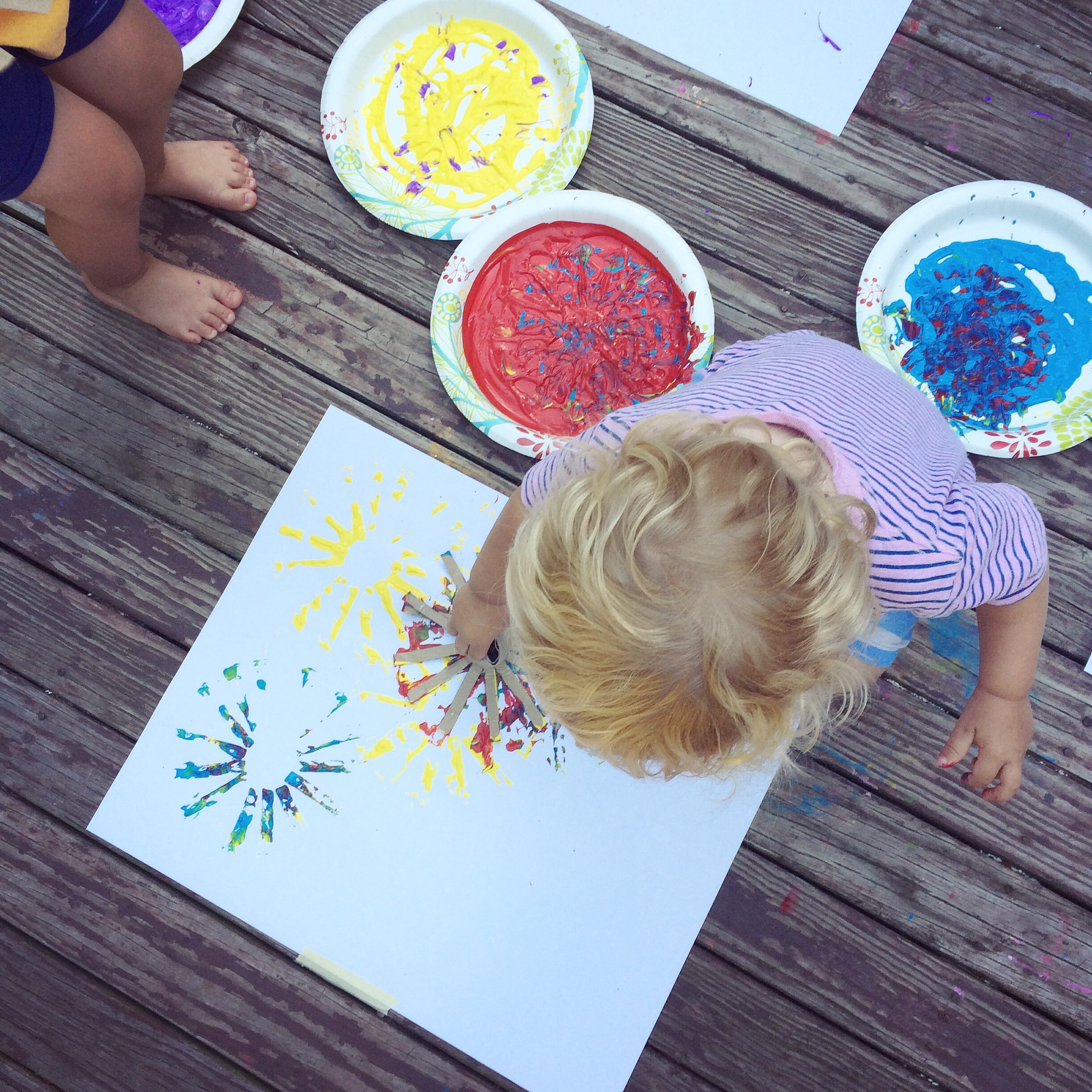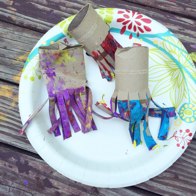 A friend posted this idea on my Facebook page, and I had to try it! Originally from Learning 4 Kids on Pinterest (whoa social media), this activity uses cardboard tubes to make fireworks. How fun for the Fourth of July!