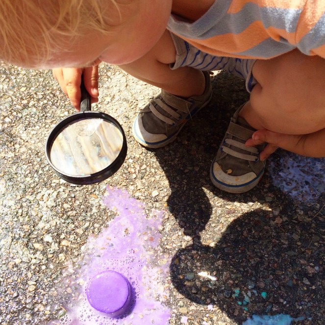 I gave them spray bottles with vinegar and that’s when it really got fun. Fizzzzzz. Once Jackson figured out the handle, there was no stopping him!
