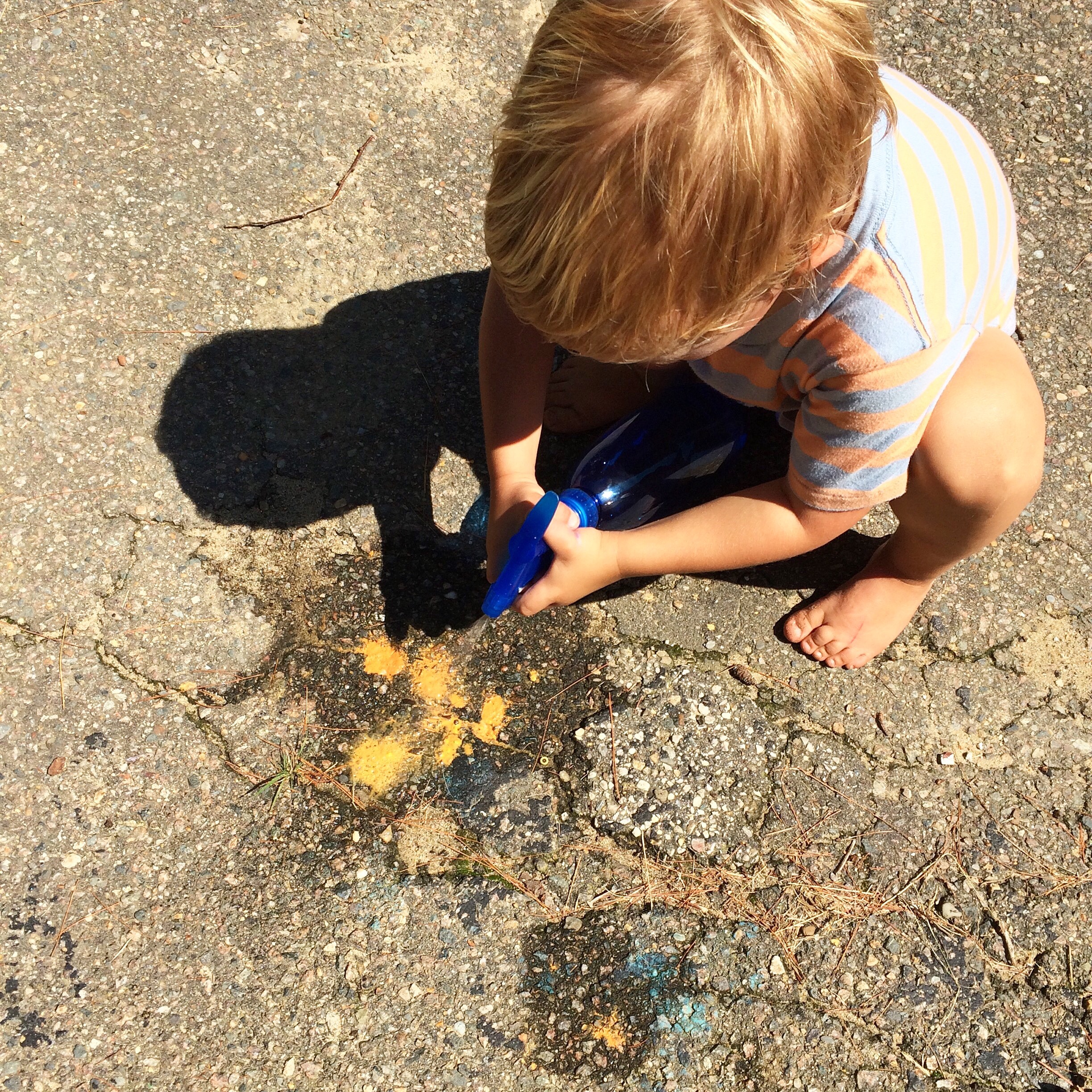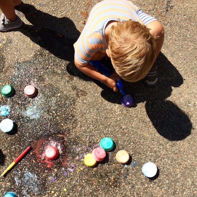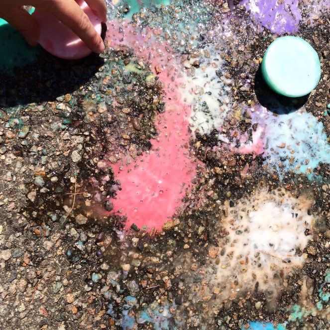 A sweet summer activity! There are a bunch of different ways to do this (just google/pinterest “chalk ice” or “chalk paint”). This is our version.