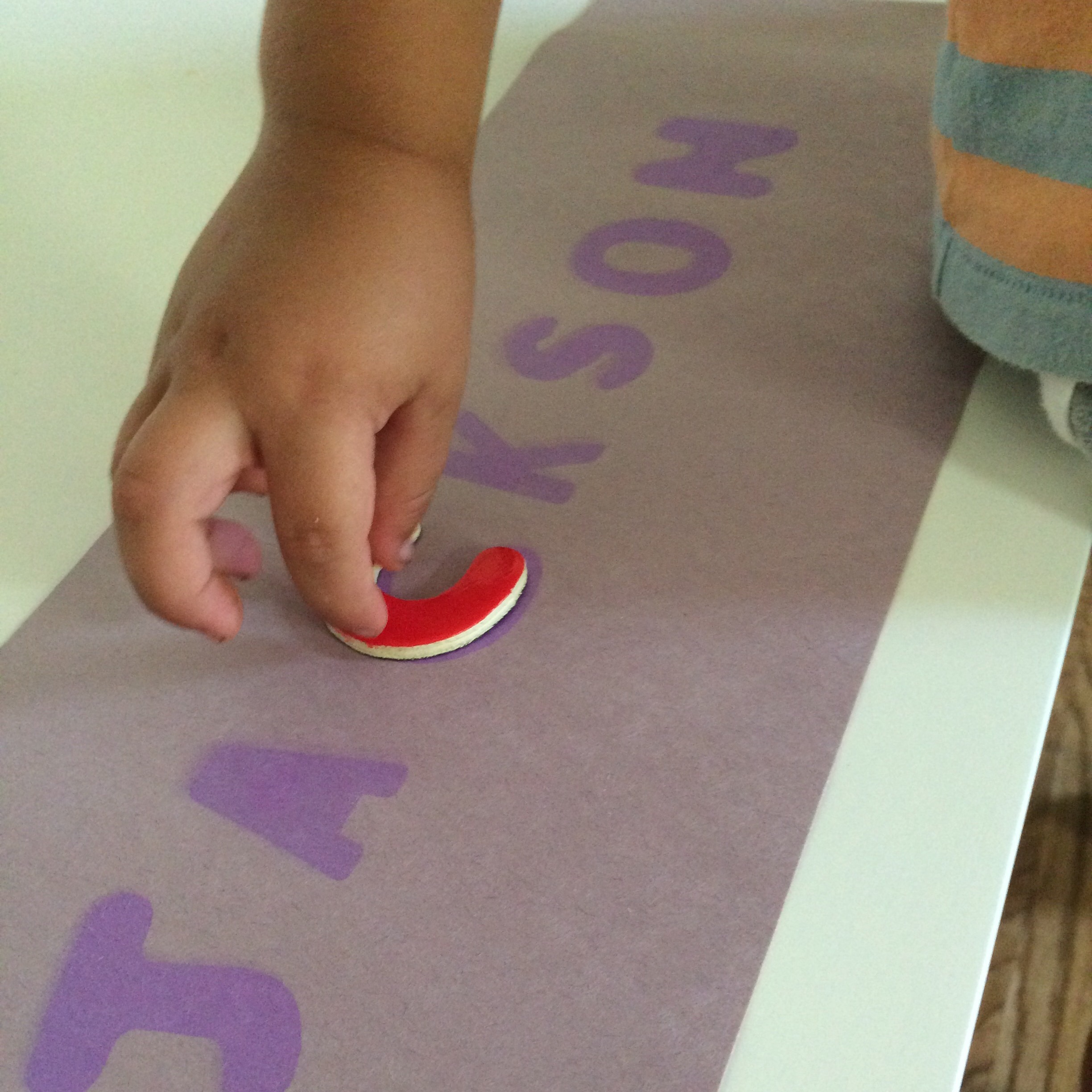 Once these are done, you can set out the paper and letters for a simple letter matching and spelling activity.