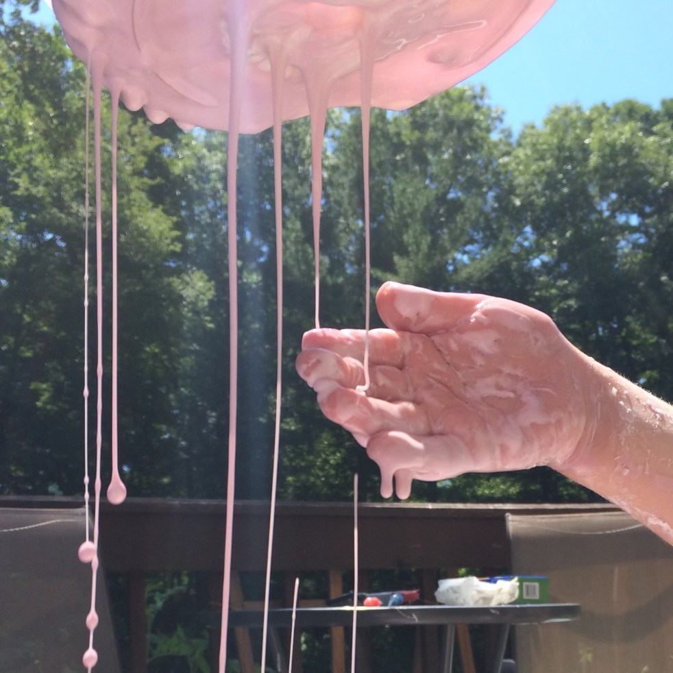 Oobleck never gets old.  Mix 2 cups of cornstarch with 1 cup of water (we doubled that for this bin) and add food coloring. You will get the craziest goop you have ever seen.  This stuff is so cool. It is hard as a rock, then melts into a puddle through your fingers. The texture… Continue reading oobleck